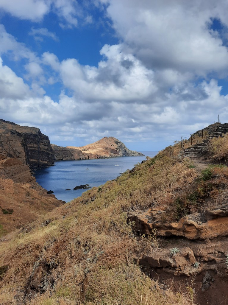 DAY 1 – We decided to tour the island clockwise. After picking up the rental car at the airport, we drove to Caniçal, only 15 min drive away from the Aeroporto. Caniçal is a small village and as such most businesses are locally owned. That afternoon we went to hike Ponta de São Lourenço only 10 minutes drive to the car park for the 8km hike that with the incline can take 2 to 3 hours. This is the driest part of the island. In Madeira it doesn’t rain much but it is often foggy. When you stand on the edge of the Ponta de São Lourenço, you can see have a 180° of the island and spot how the weather changed around its green and mountainous centre.