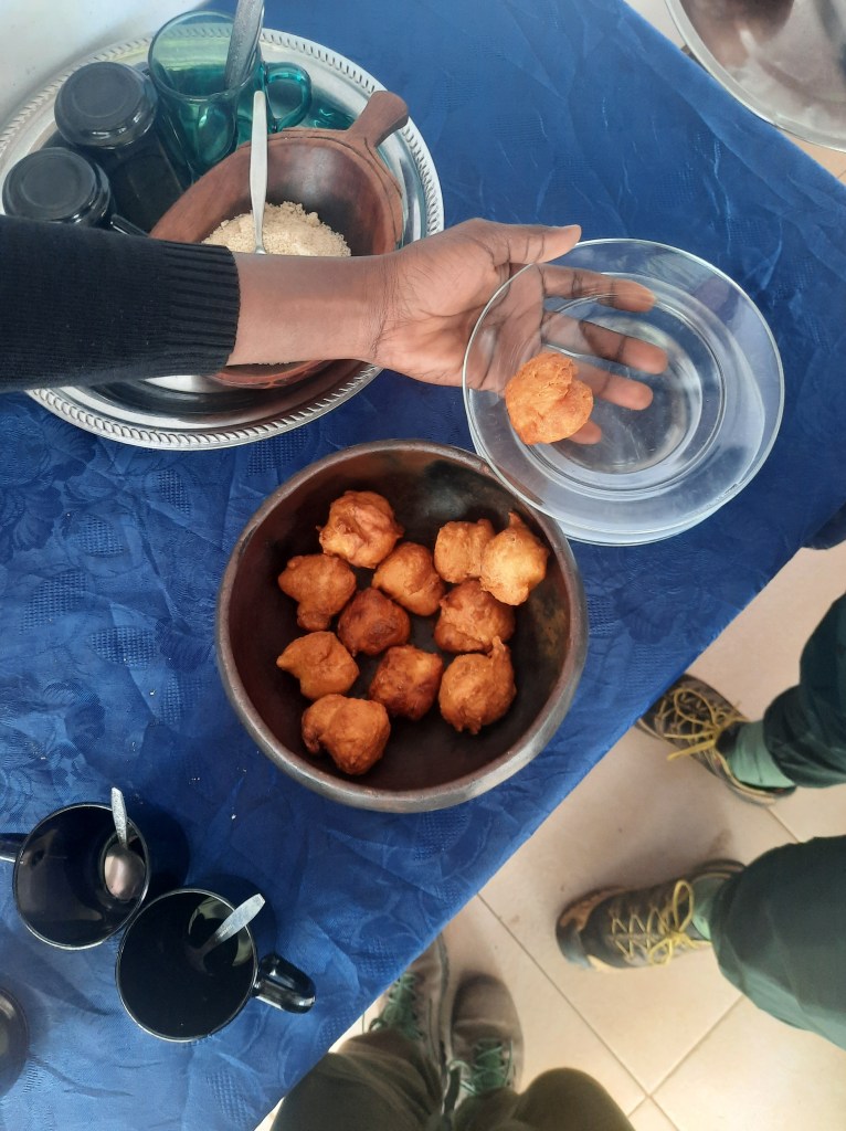 We spent a few days living with the Pallangyo family, during that time we only drank hot beverages and their home grown coffee which kept us warm throughout the day. We had breakfast, lunch and dinner with the whole family in the living room. They cooked a variety of plates for each meal, all made with ingredients cultivated in Mulala and therefore mostly vegan as opposed to the meat we had been offered in our Safari experience. Every plate was a new experience of food we had never seen before or after. Over each meal we exchanged stories, they asked us questions about our family, our home, our work, our travels, our relationships and our plans for the future. We asked them questions about Tanzania, their government, education, climbing mount Meru, seasonal fruits, relationship with the Maasai, Meru language and dreams for the future through Bryan who translated it all.