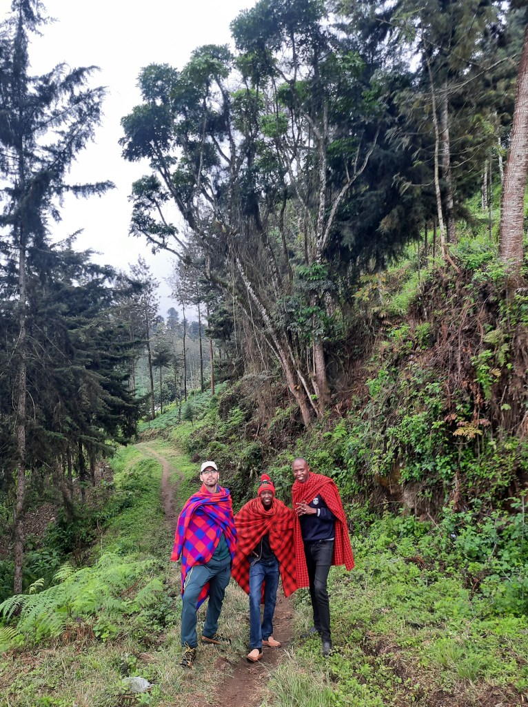 Justin and Bryan took us for a foraging hike around the village. They told us about the medicinal properties of each plant, how they prepare it and what remained mostly a mystical belief. They dressed us with ‘shuka’ cloth to keep us warm and told us how and why the female clothings are decorate differently. With our little knowledge of Meru language, we greeted everyone we saw as we explored the fields of the village. People were pleasantly surprised we would be able to respond to basic communication and made a real difference to the inevitable attention our presence attracted anyway. We learned about their cultives, their seasonal crops and they showed us the school and introduced us to some of the children doing their homework after classes finished.